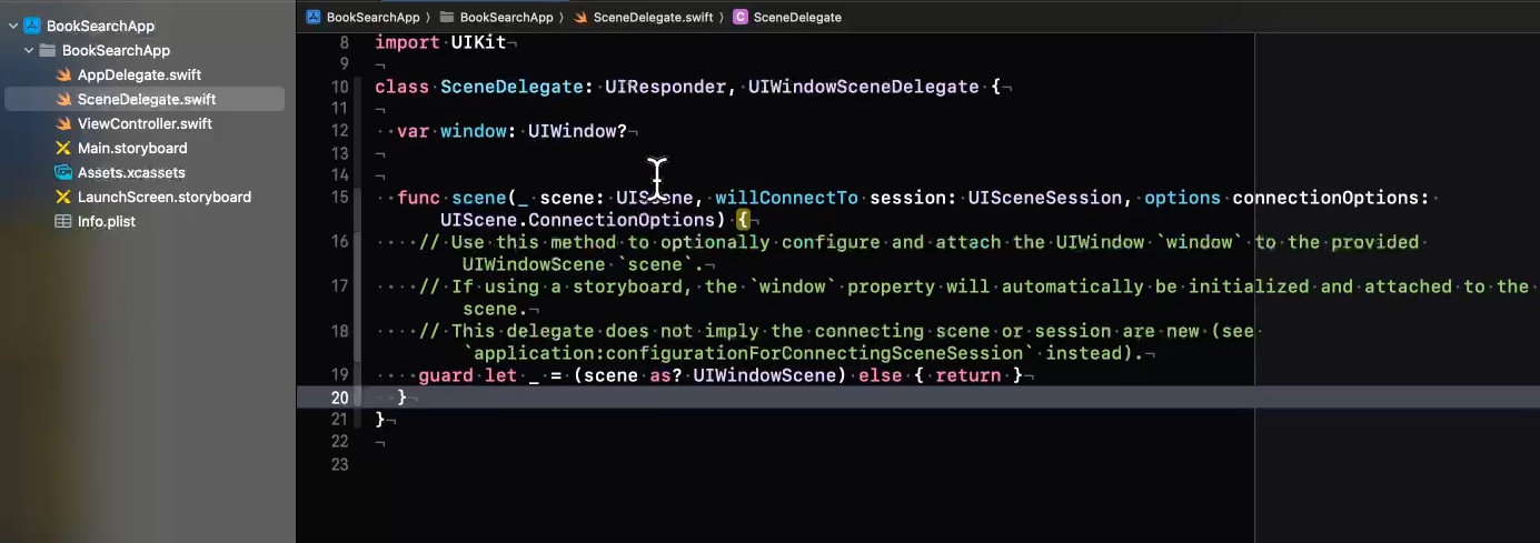 코드 베이스로 구성할 것이기 때문에 씬딜리게이트에서 willConnectTo 제외하고 모두 지워준다