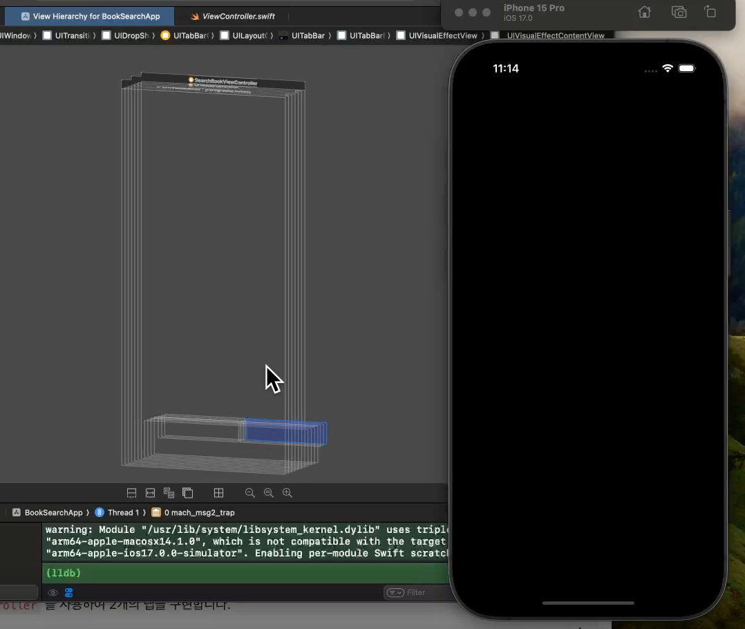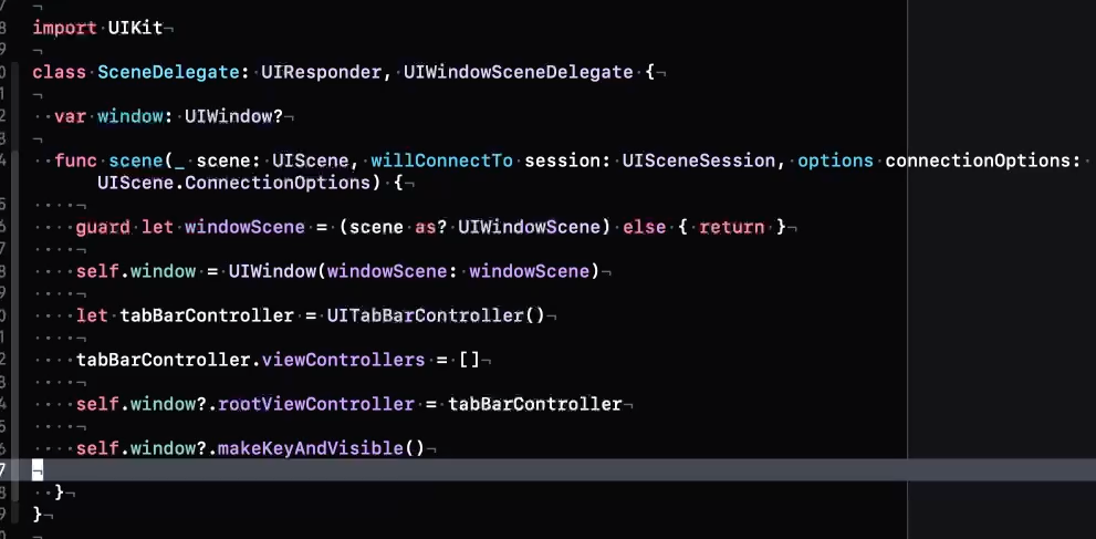 → 최초에 화면이 만들어질 때는 viewDidLoad가 보이지 않으므로 init에 탭바를 만들어줌