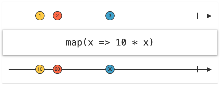 - Observable에서 방출된 각 item을 특정 로직에 따라 독립적으로 변환한 후 새로운 Observable을 통해 방출