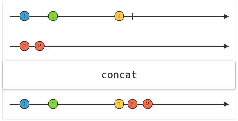 - concet은 여러 Observable을 순차적으로 결합하여 순서대로 방출한다(순서가 보장된다)