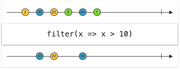 Observable에서 방출된 값들 중 특정 조건에 해당하는 값만 방출하도록 필터링