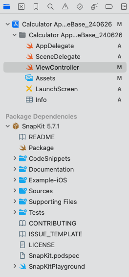 6. xcode 에서 snapkit이 추가된 것을 확인할 수 있음